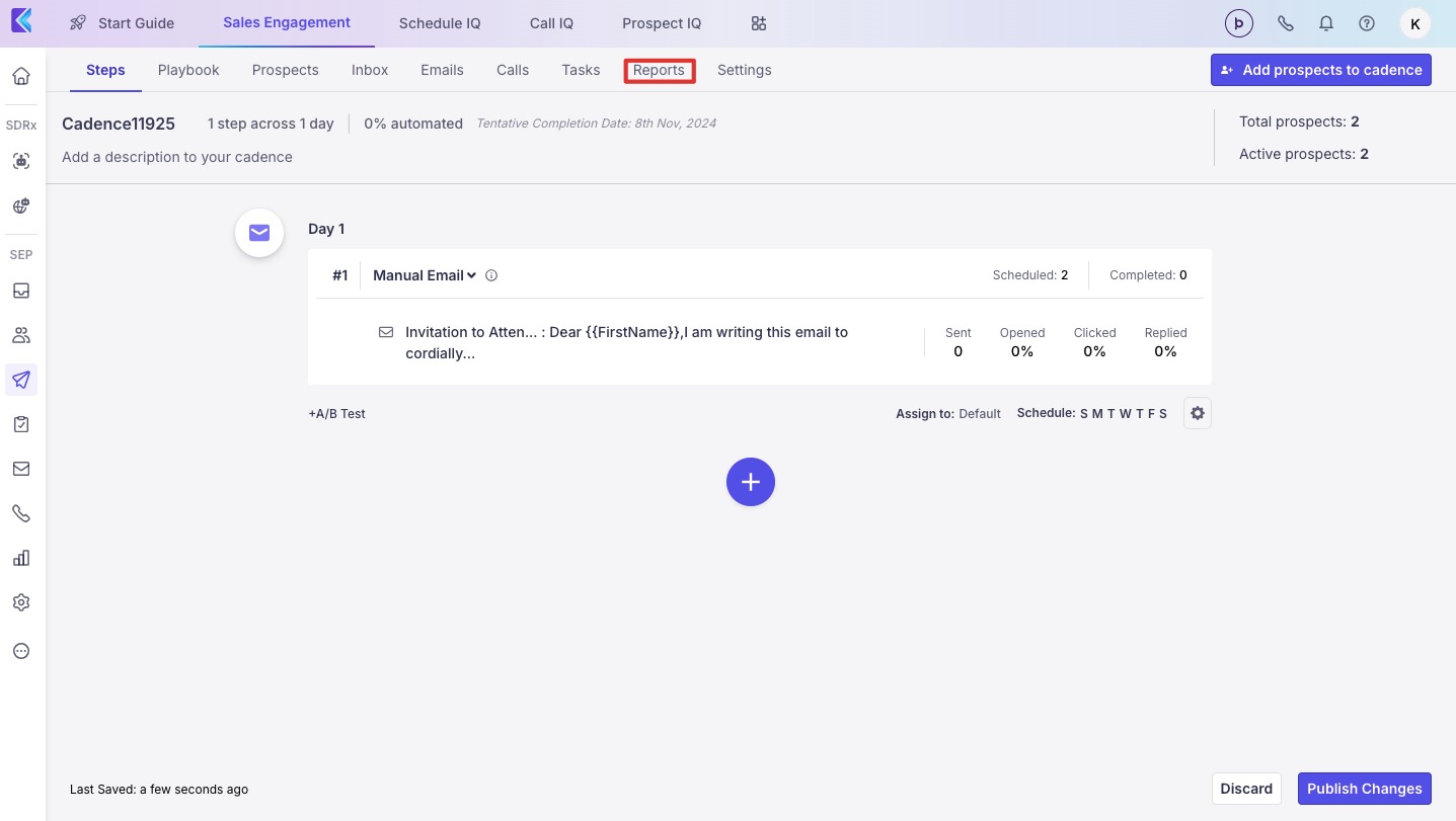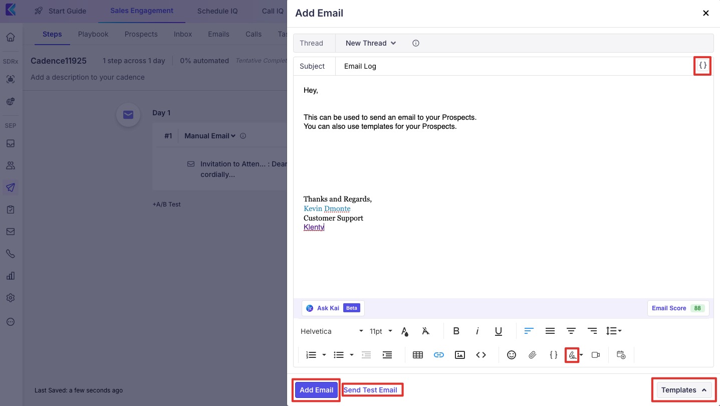 Once you select the template you want to use, you can modify it to suit your cadence if required, then click on Insert to Cadence.