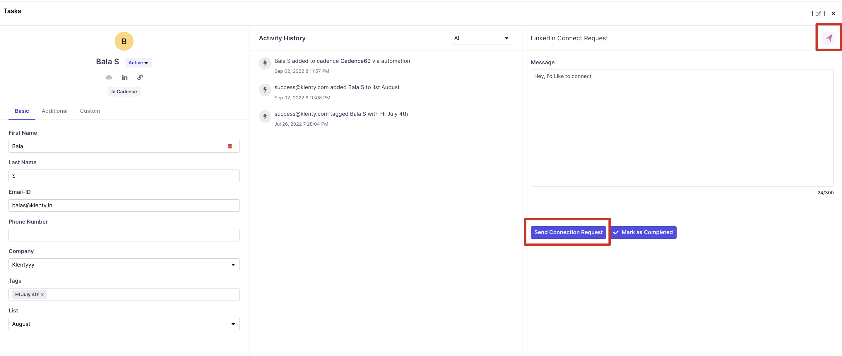 Additionally, you can execute your LinkedIn tasks with a click from your Activity Center as well.