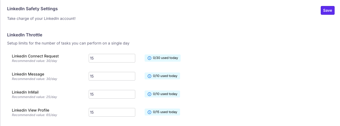 LinkedIn’s user agreement doesn’t permit anyone to send more than a certain number of automated communications every day. This is to assure that every user gets an excellent user experience with LinkedIn. That is why Klenty has an inbuilt feature called LinkedIn Throttle. This assists you in ensuring that you don’t send beyond LinkedIn’s suggested daily limit.