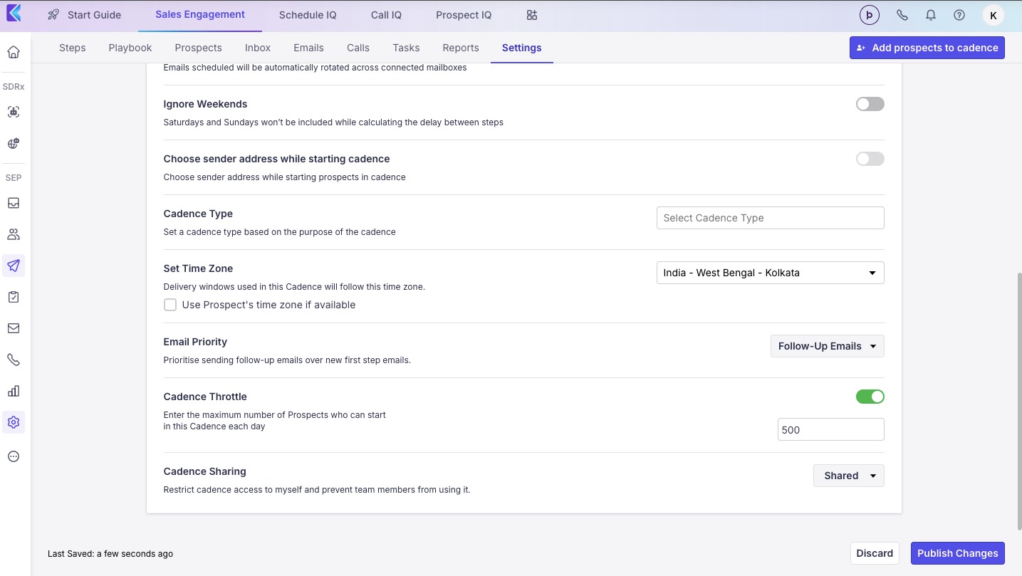 Cadence Throttle - By enabling the throttle, one can set the maximum number of Prospects who can start in the Cadence each day.