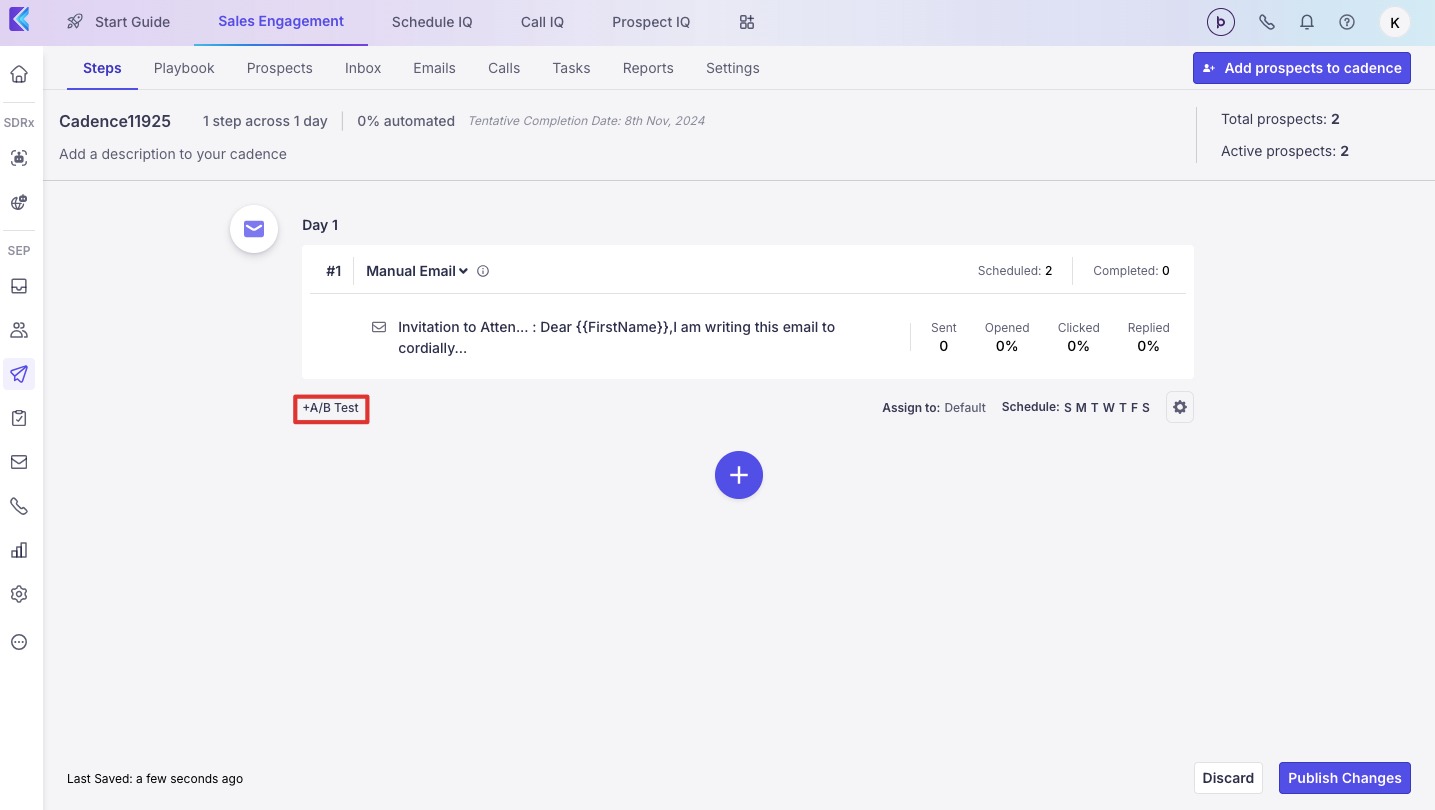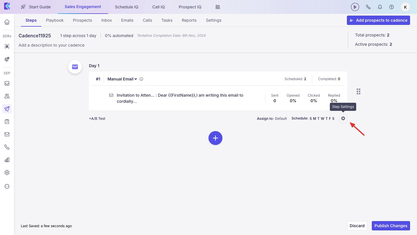 Follow the steps earlier to add an email to a cadence
