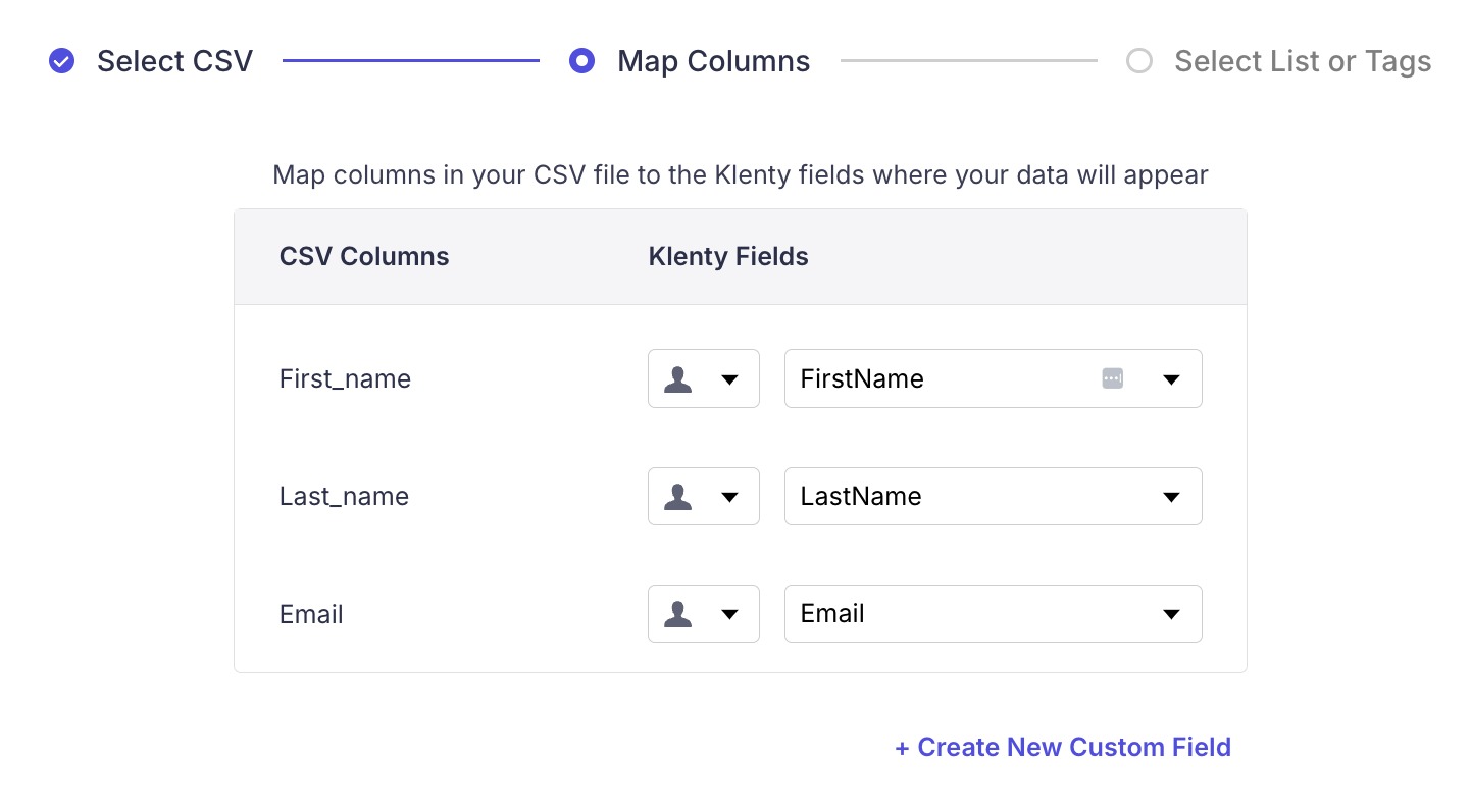 3. Klenty will automatically map the column headers with prospect fields. Verify that your headers are mapped to the correct fields you want to use.