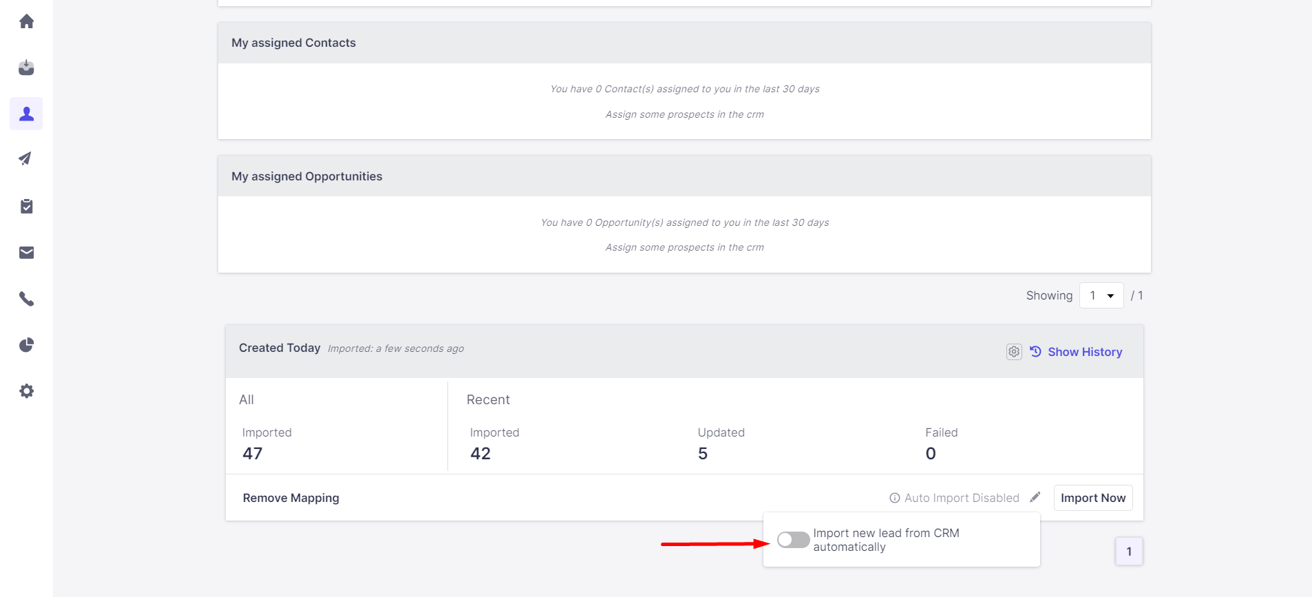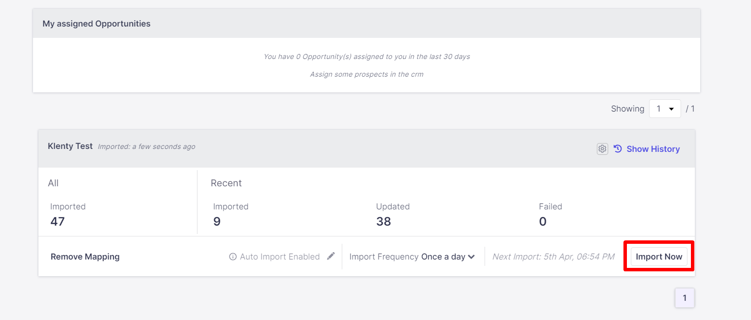 Use the Import Now button to import/update prospects immediately, when needed.