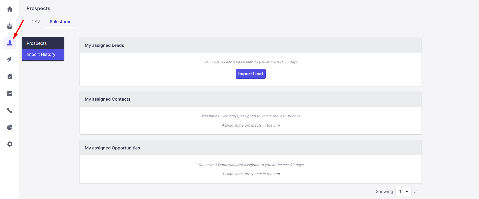 Under Prospects -> Import History, you can view the Salesforce reports you have imported.