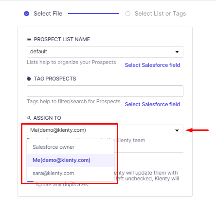 You can choose the 'Contact owner' option so that the same owner in Salesforce will reflect in Klenty as the prospect owner.
