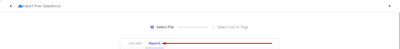 Select the Report you want to import from the drop-down box. You can also import from the List view in Salesforce.