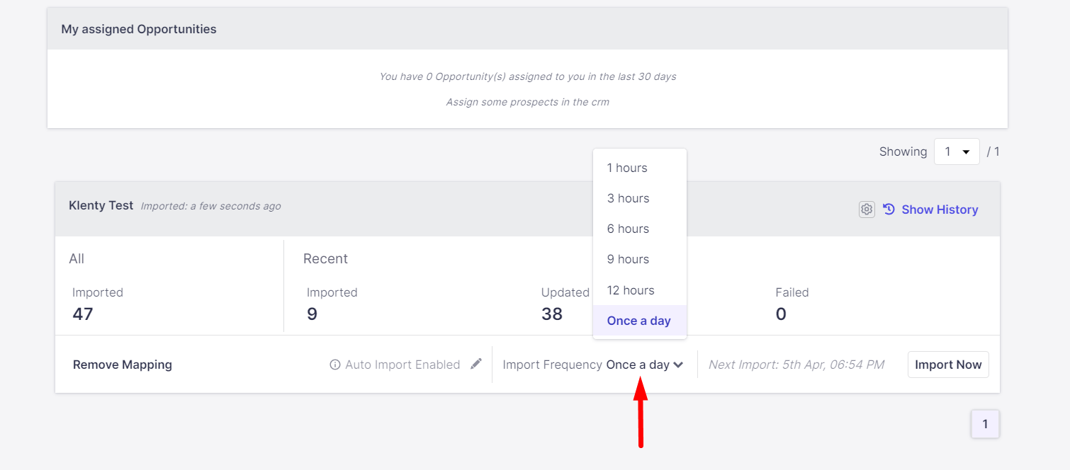 Toggle on Auto import to automatically add prospects to Klenty when the Imported filter is updated.