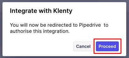 Hit Proceed and it takes you to Pipedrive's website to authorize the integration.