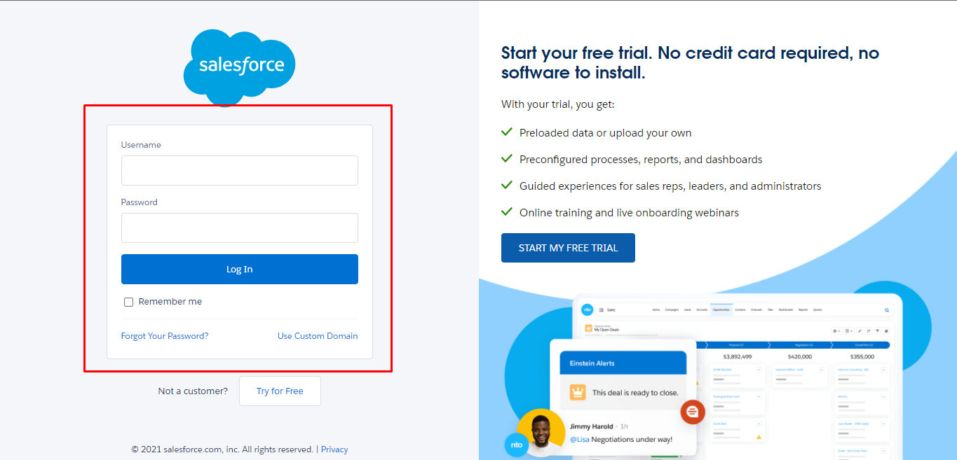 Click on Salesforce and you’ll be redirected to Salesforce login page.