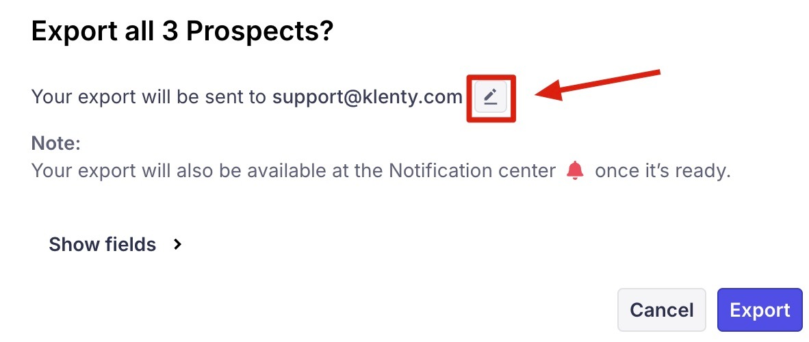 You can change the email address by clicking on the pencil icon. Klenty will send a link to download the CSV file to this email address