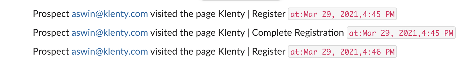 } Where do I see the website visits & form submissions? You can find the website visits and the submitted forms in the prospect activity history, Live feed and can set up slack notification. Activity History: