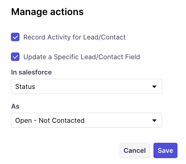 Reply (First Reply Only) - When a first reply is received from the prospect, a new Lead is created in Salesforce. If the lead is already available, a closed activity is created in the Lead/ Contact