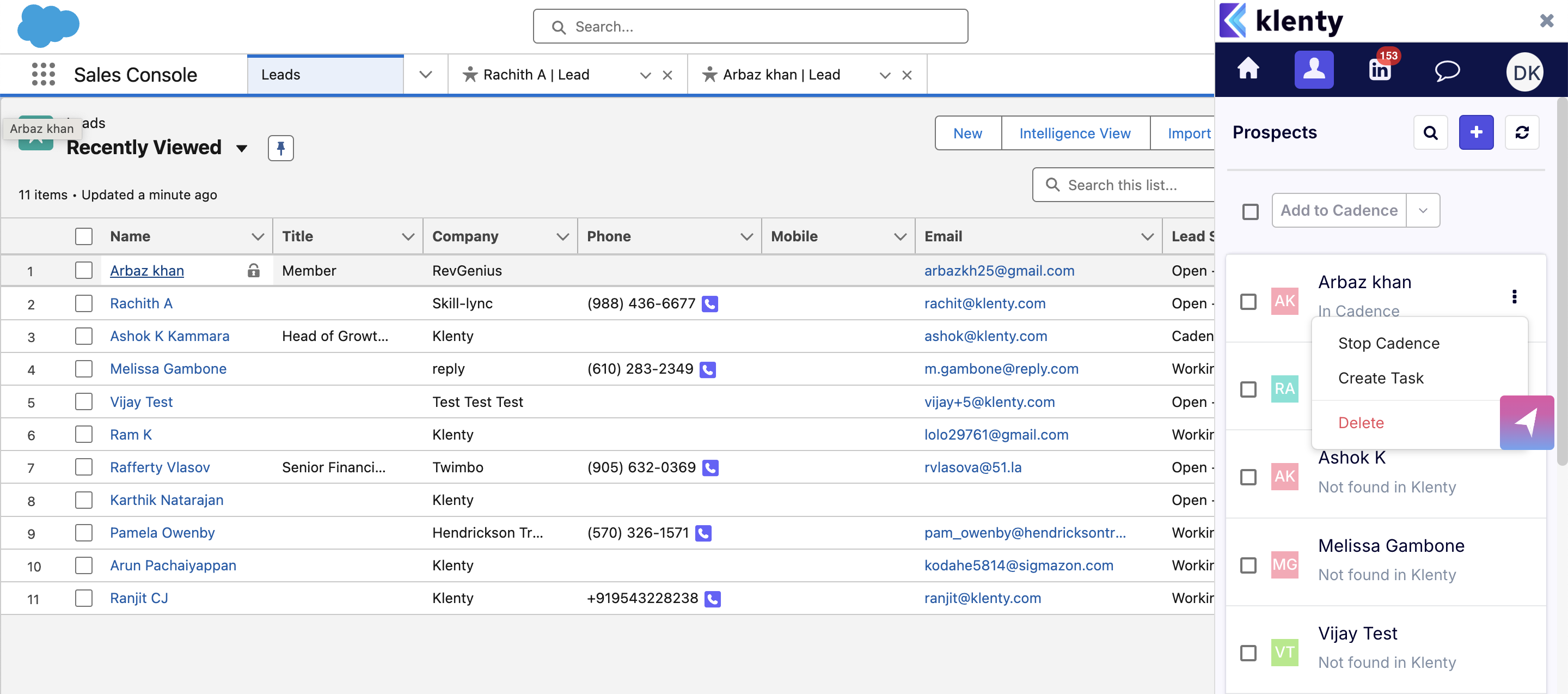 Now you will see the list of prospects from the Salesforce leads page in the extension tab.