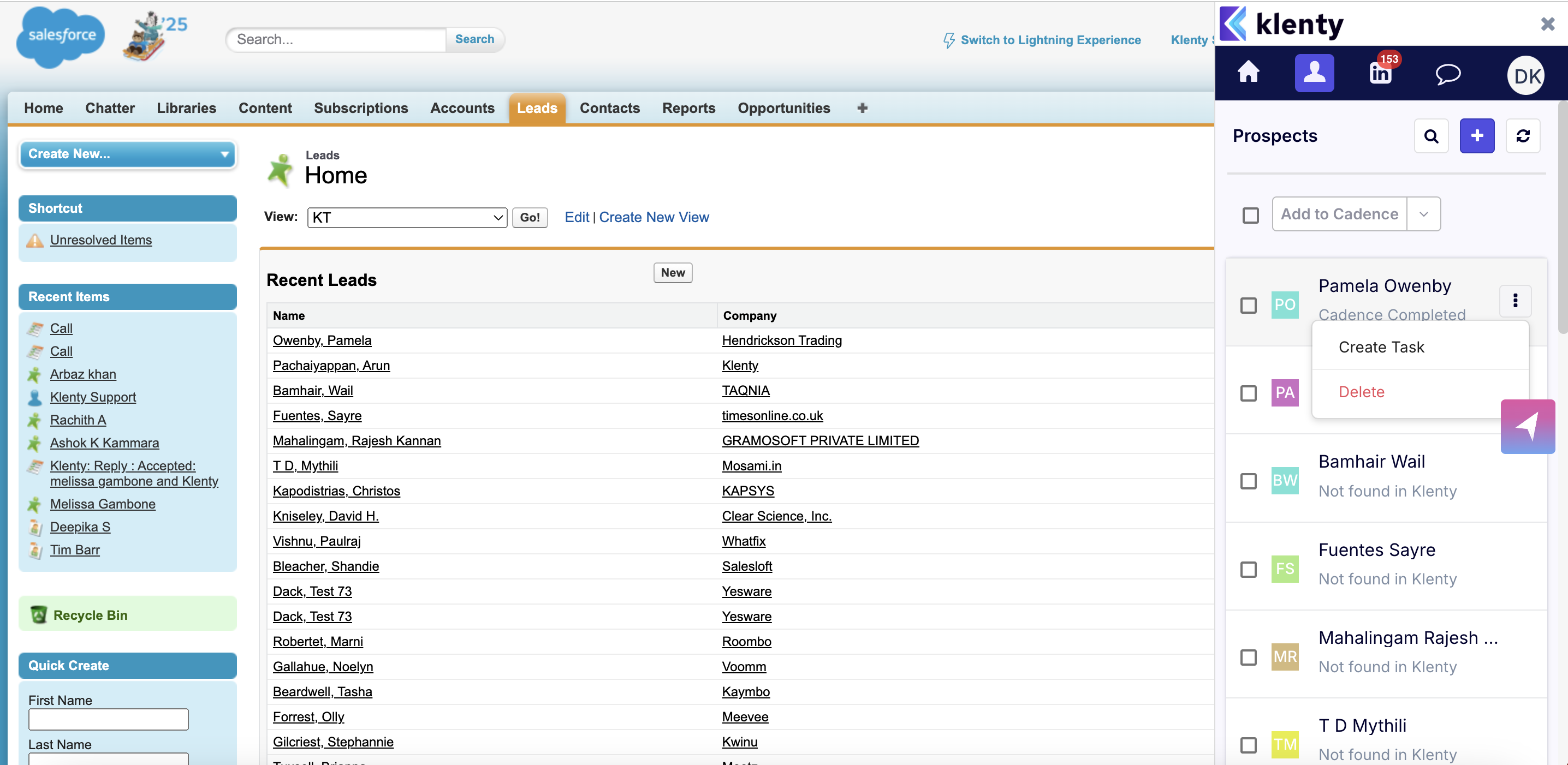 Push to Klenty – add a lead from Salesforce to Klenty