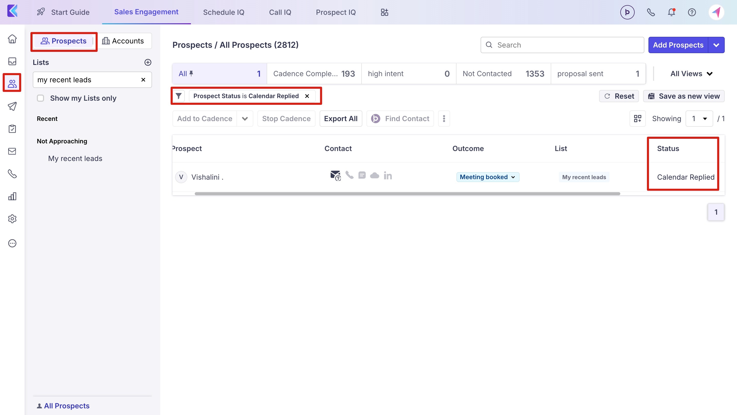 Once a prospect books a meeting the prospect status will be shown as Calendly Replied , you can filter out the prospects as Calendly Replied.