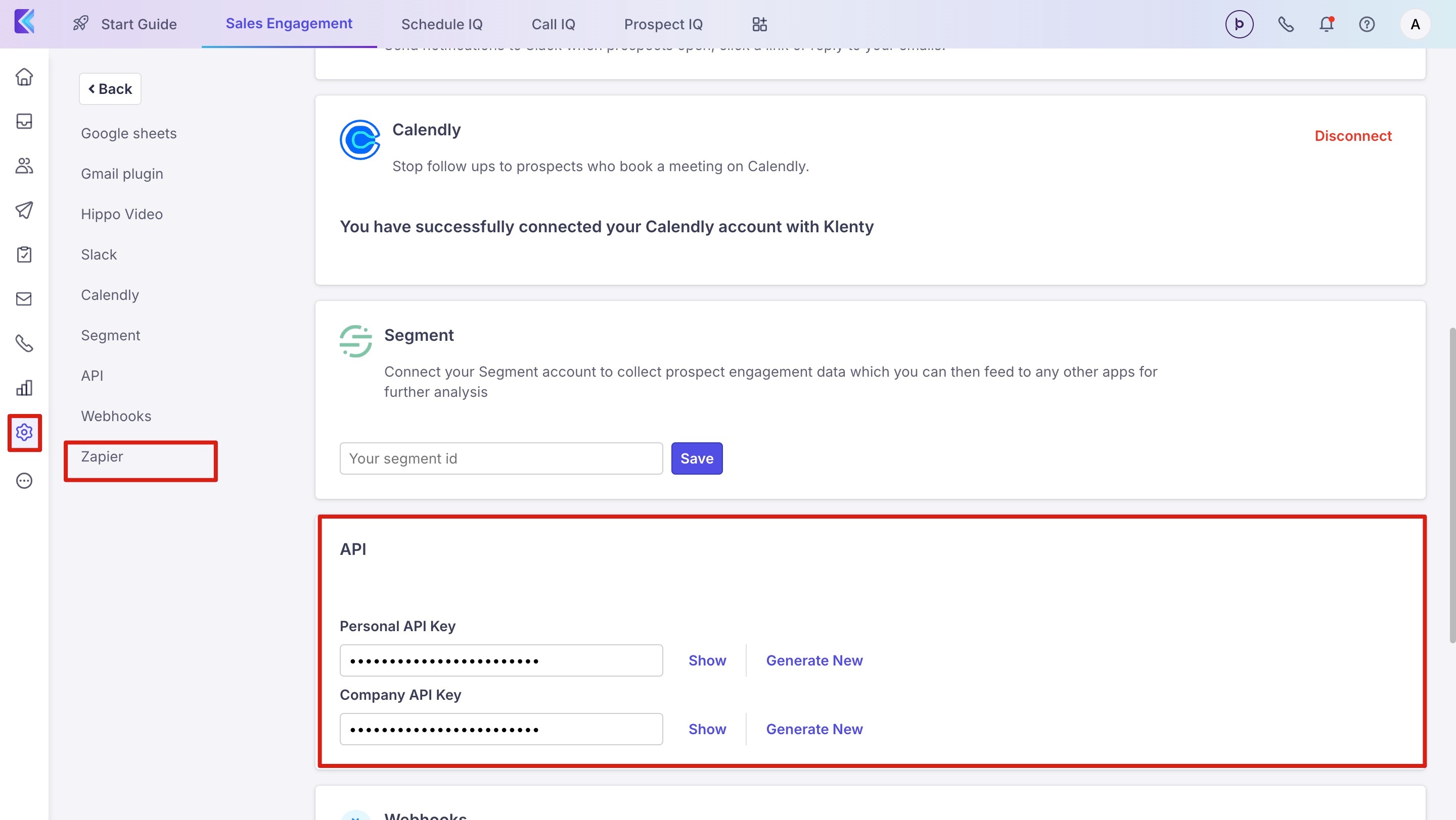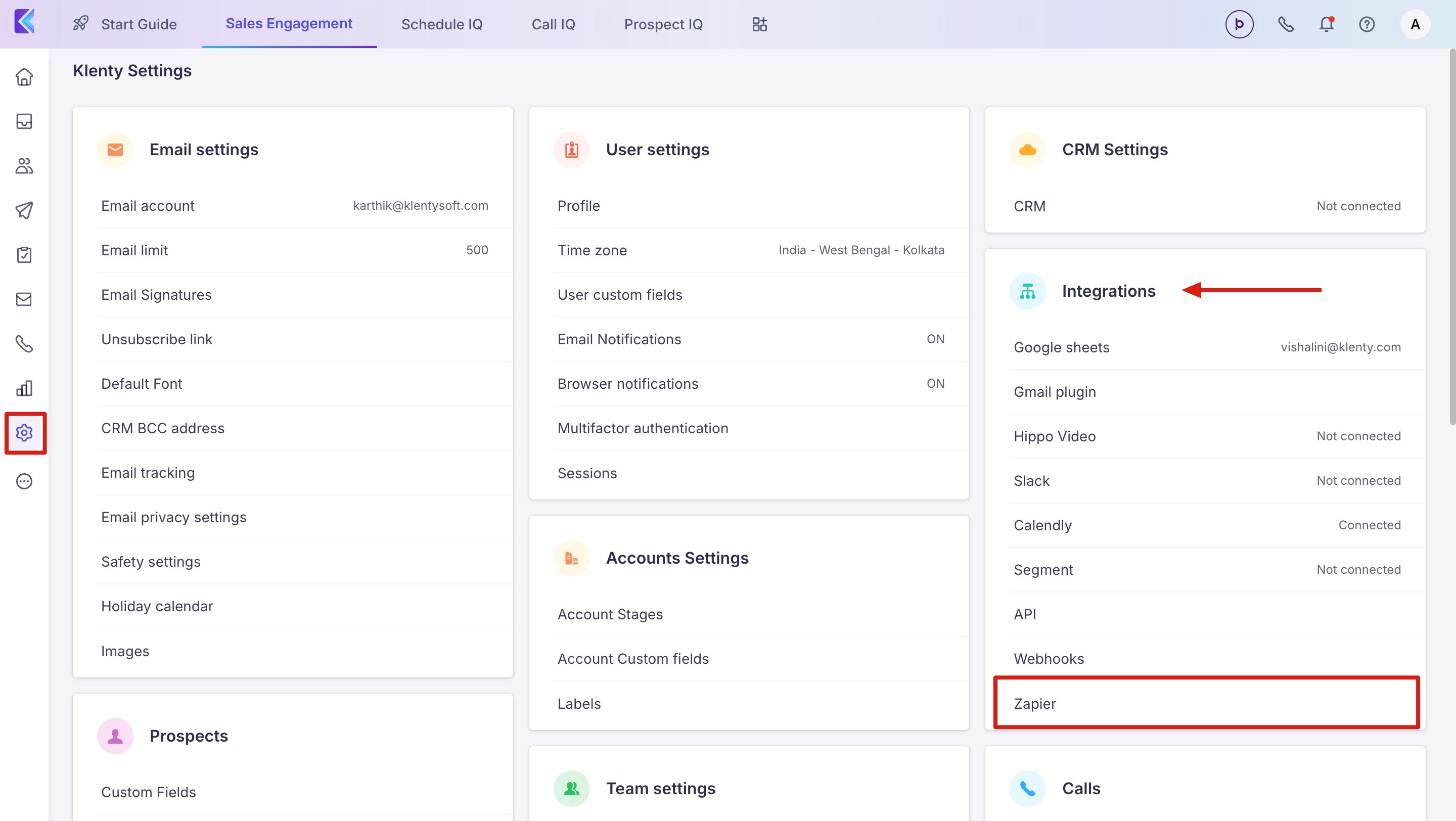 To use the Zapier integration, you will need the Klenty API key that you can find in Settings -> Integrations -> Zapier