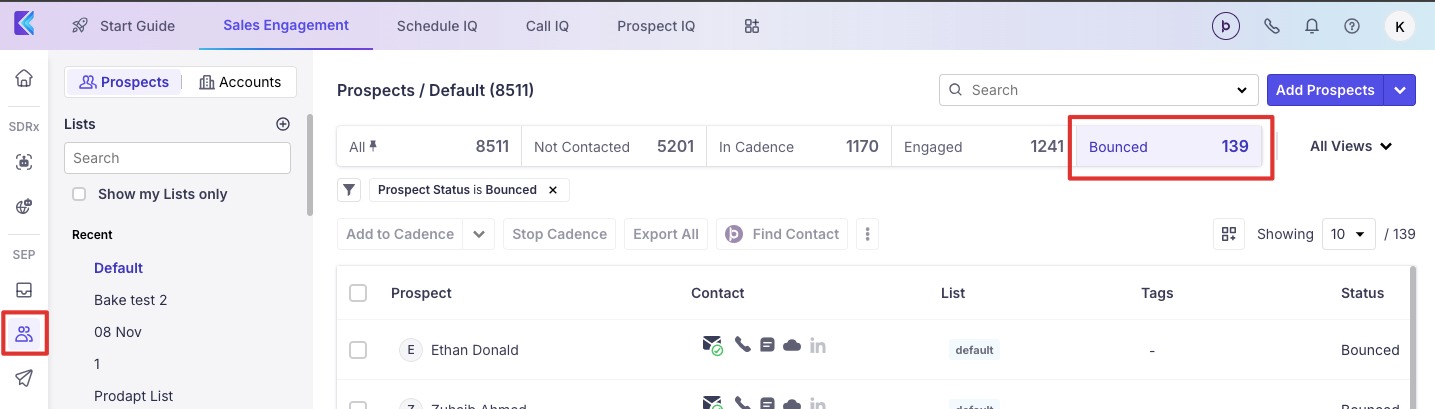 If Klenty detects a bounce message for a prospect you have emailed, the Prospect is marked as bounced and stopped from receiving any more emails. This mechanism prevents multiple bounces for the same Prospect, which can cause deliverability issues.