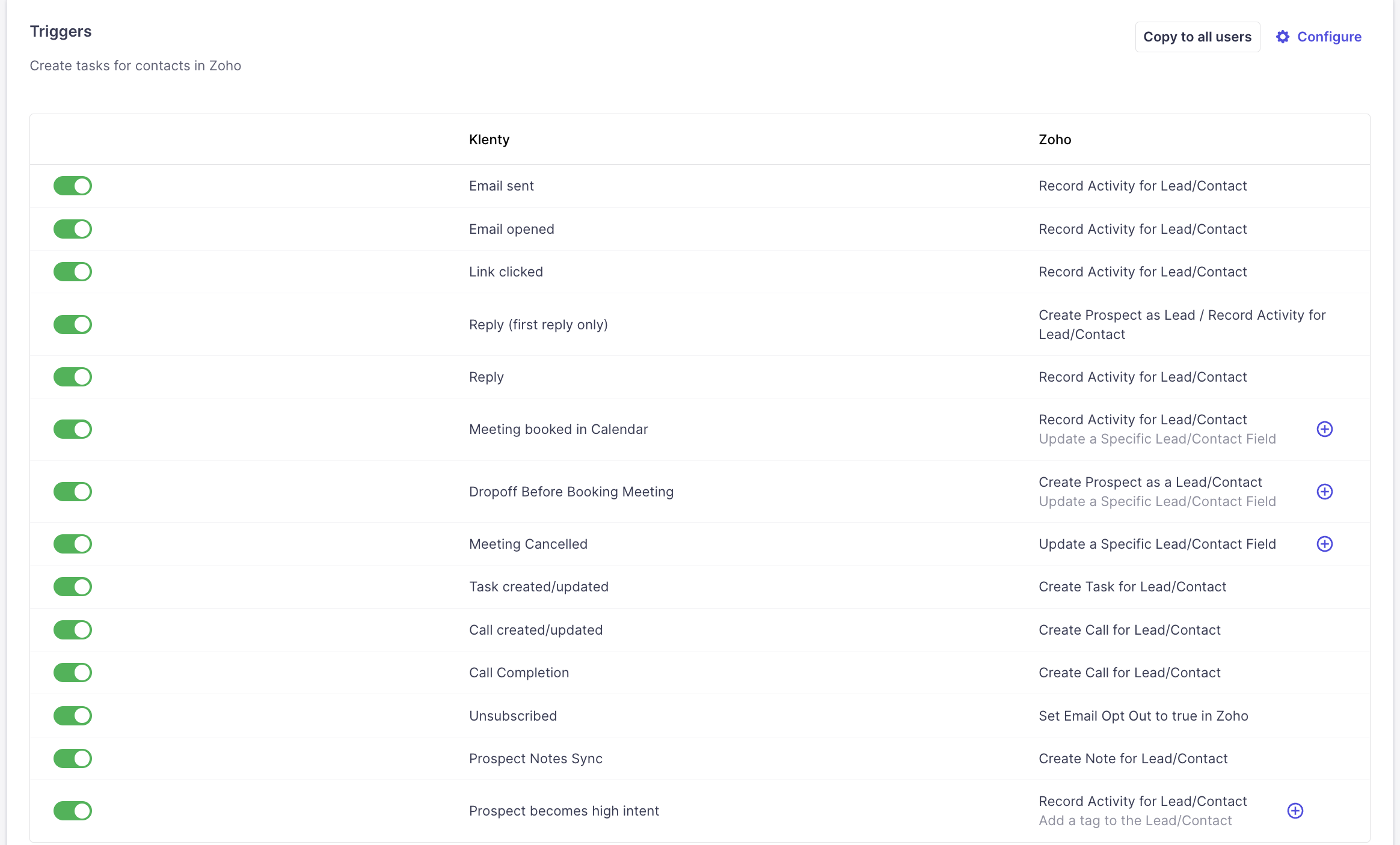With your Zoho CRM integration, you can automatically sync email, Calls and Task activities from Klenty.