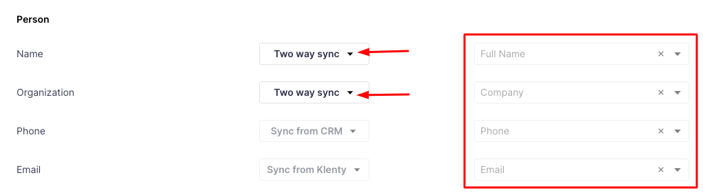 Deal Title will work both ways only if you choose a custom field while mapping in Klenty. If you choose a default field like Email, the sync works only one way.
