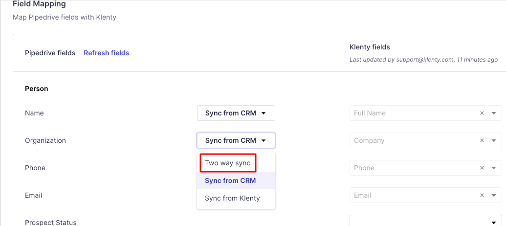 With this, you can keep your contacts in sync between Pipedrive and Klenty. Any changes to people in Pipedrive will sync to prospects in Klenty and vice versa.