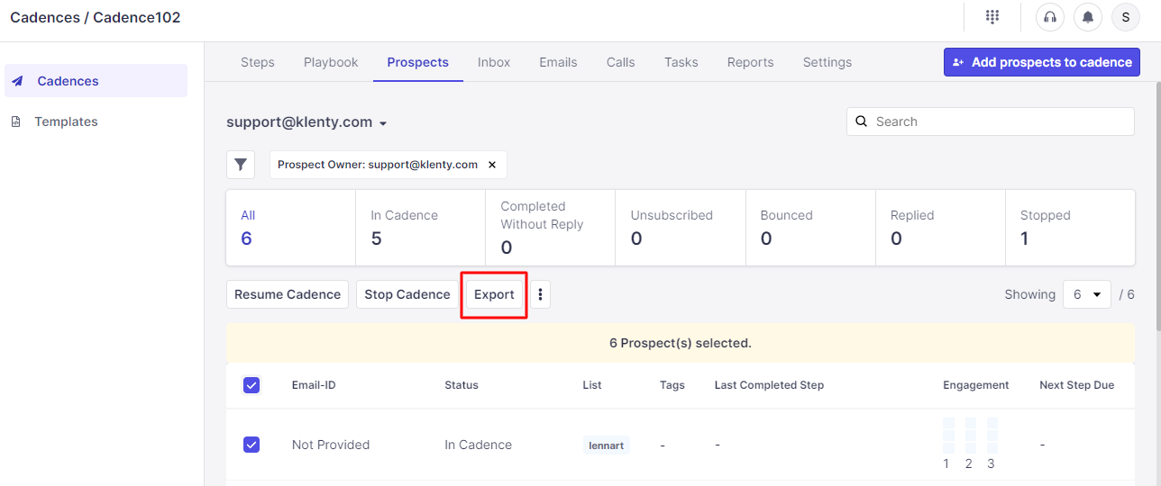 When taking export of your Reports, if there are more than 100 Prospects, Klenty will send a CSV to your email (Your Klenty username).