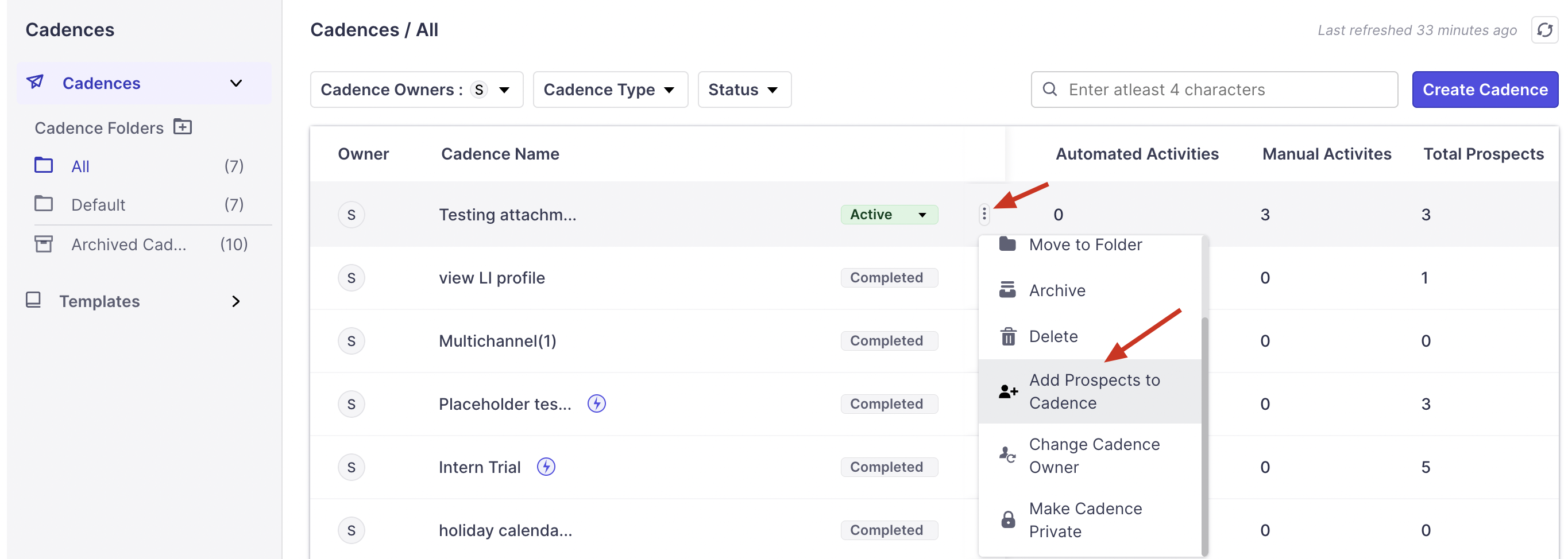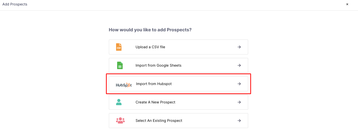 When adding prospects to a Cadence, you can choose the option Import from Hubspot directly. This will ensure that all the contacts imported from HubSpot are added to the cadence immediately.