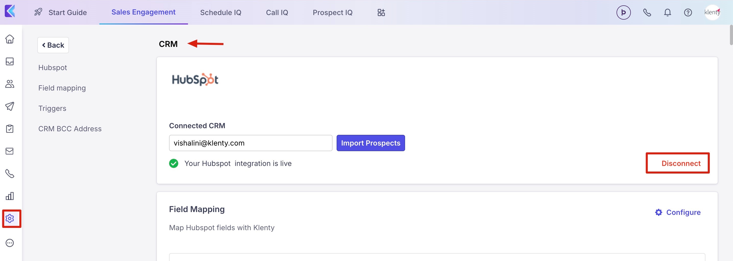 To disconnect HubSpot from Klenty -