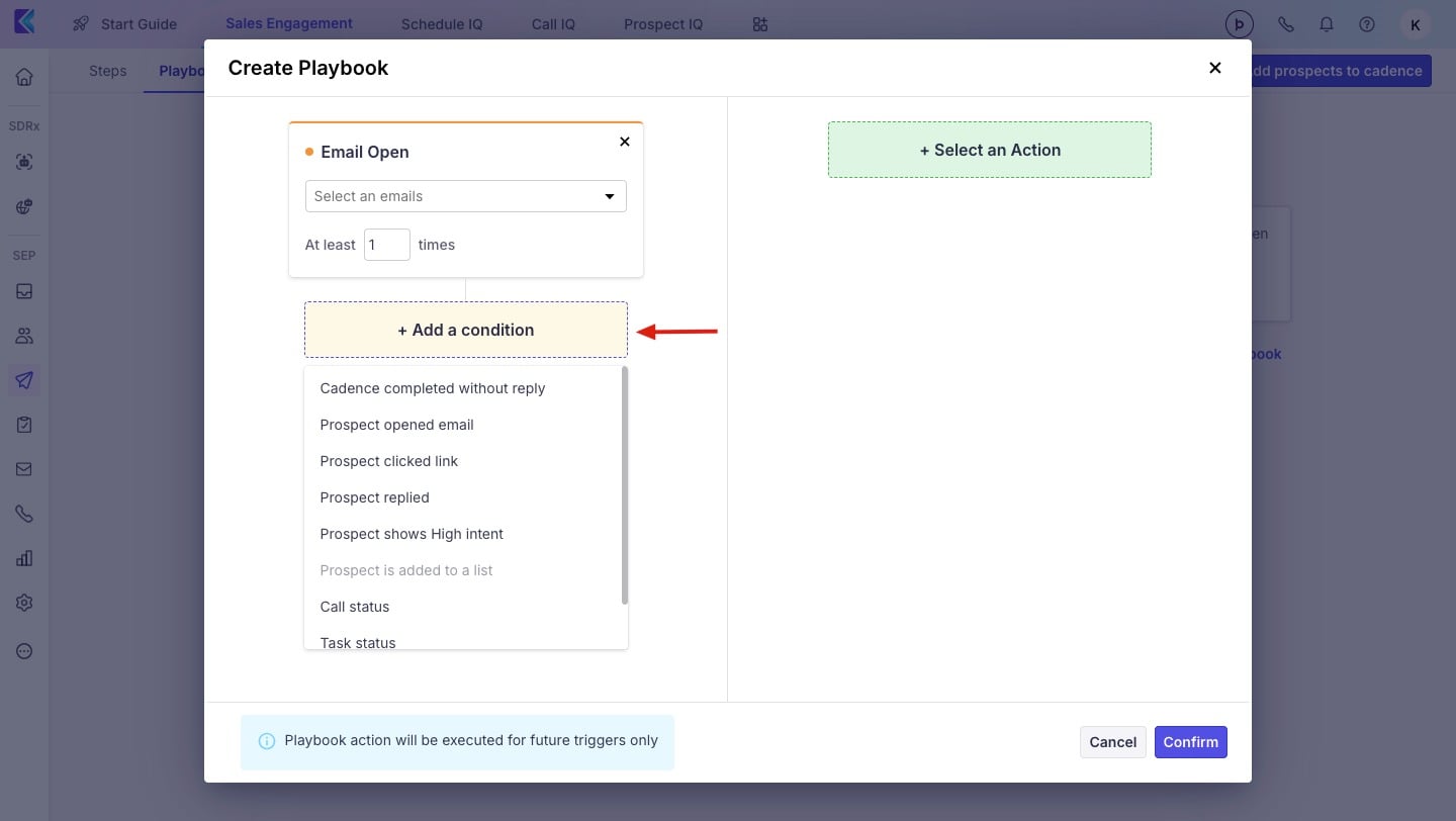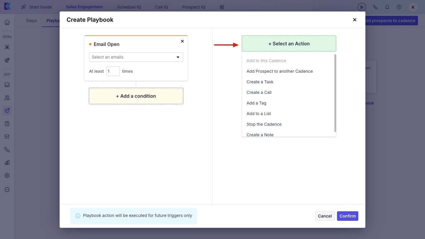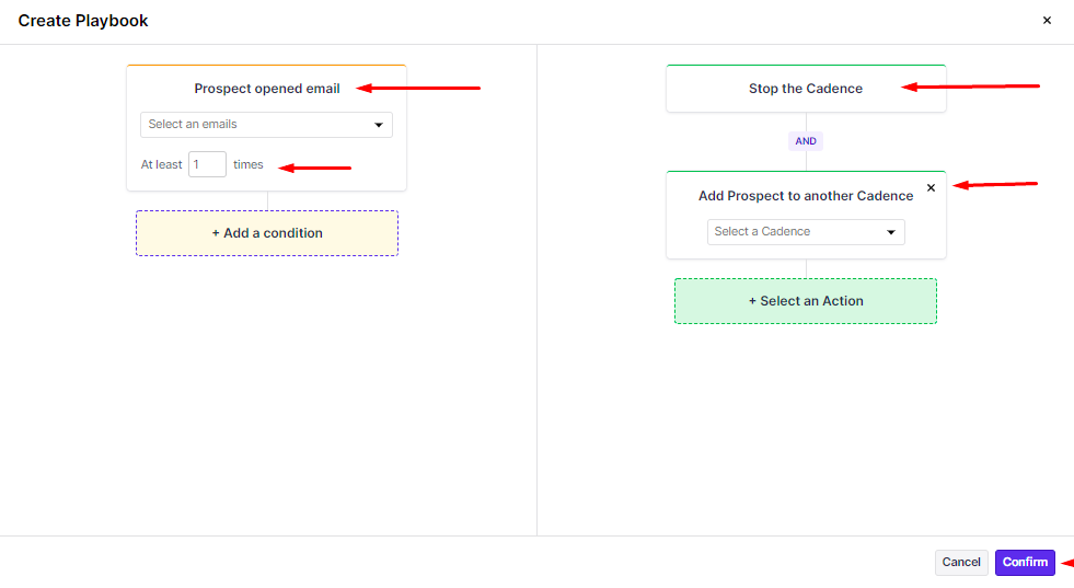 For example, if a prospect has opened multiple times or clicked on a link, automatically move them to another cadence. Now, this new cadence can be tailor-made for prospects that are engaging with emails in the previous cadence.