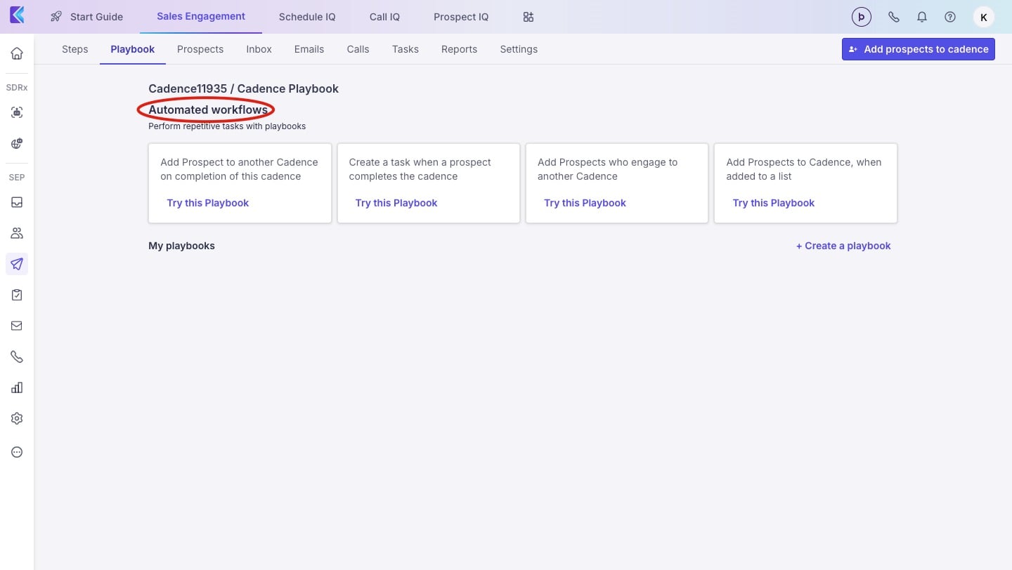 Here are a few example workflows that'll help you chain your cadences when a prospect meets a specified criterion.