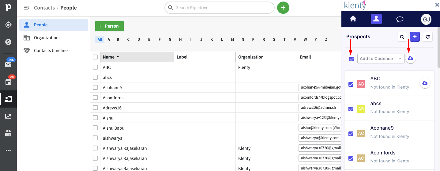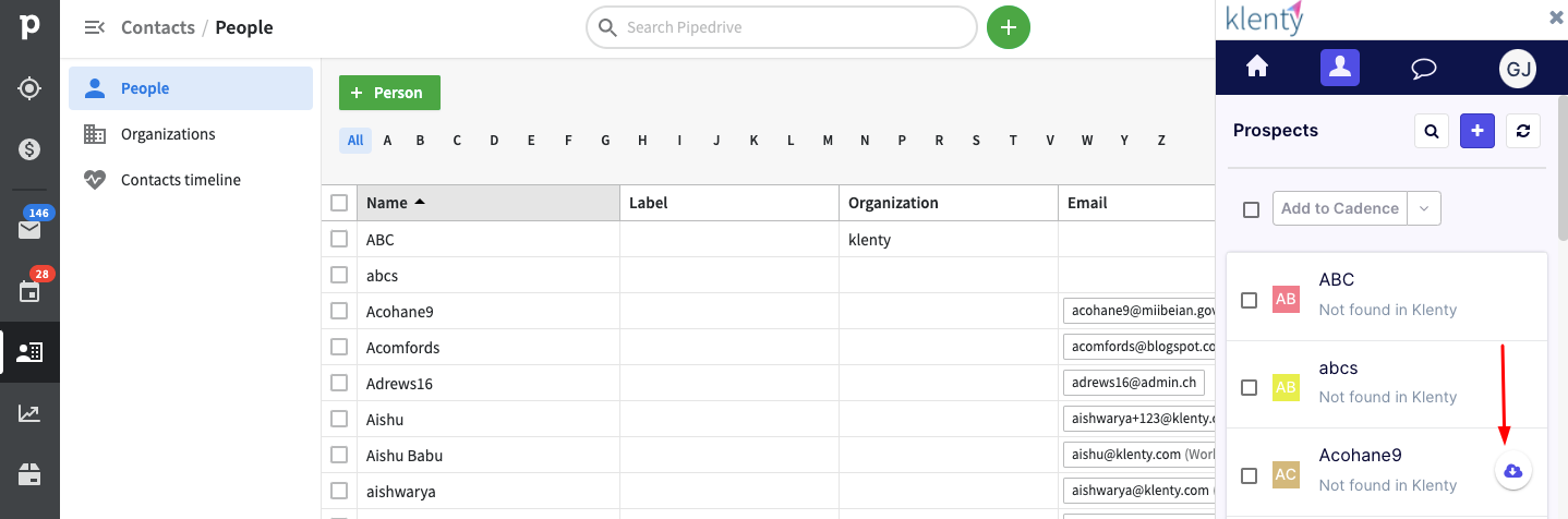 Directly push contacts to Klenty