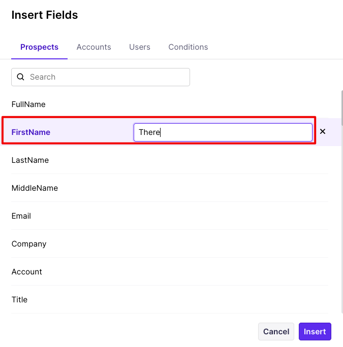 If the first name is missing for a few of your prospects, you can add fallback text to replace it:
