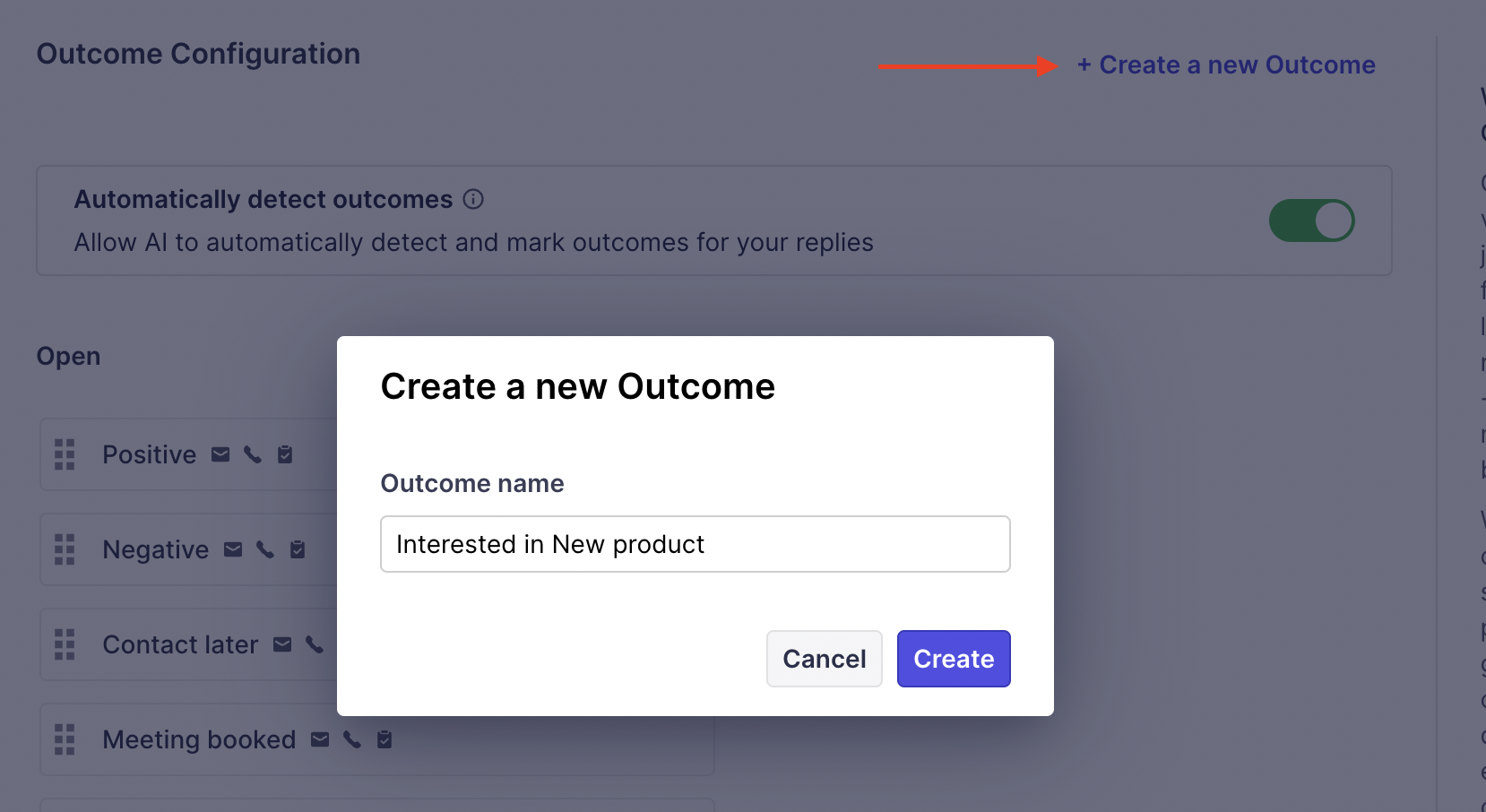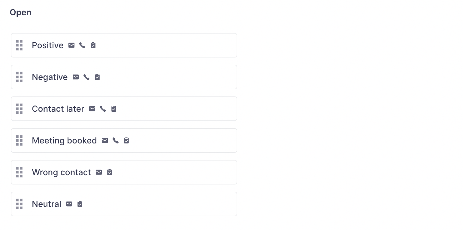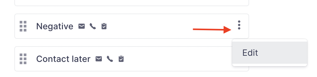 Head to Settings > Prospects > Outcome configuration to check the available outcomes and to edit it for various channels.