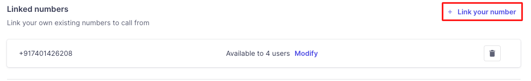 If an already existing phone number is linked by using the option "Link your number" then the call back will be received to the primary device where the number is connected.