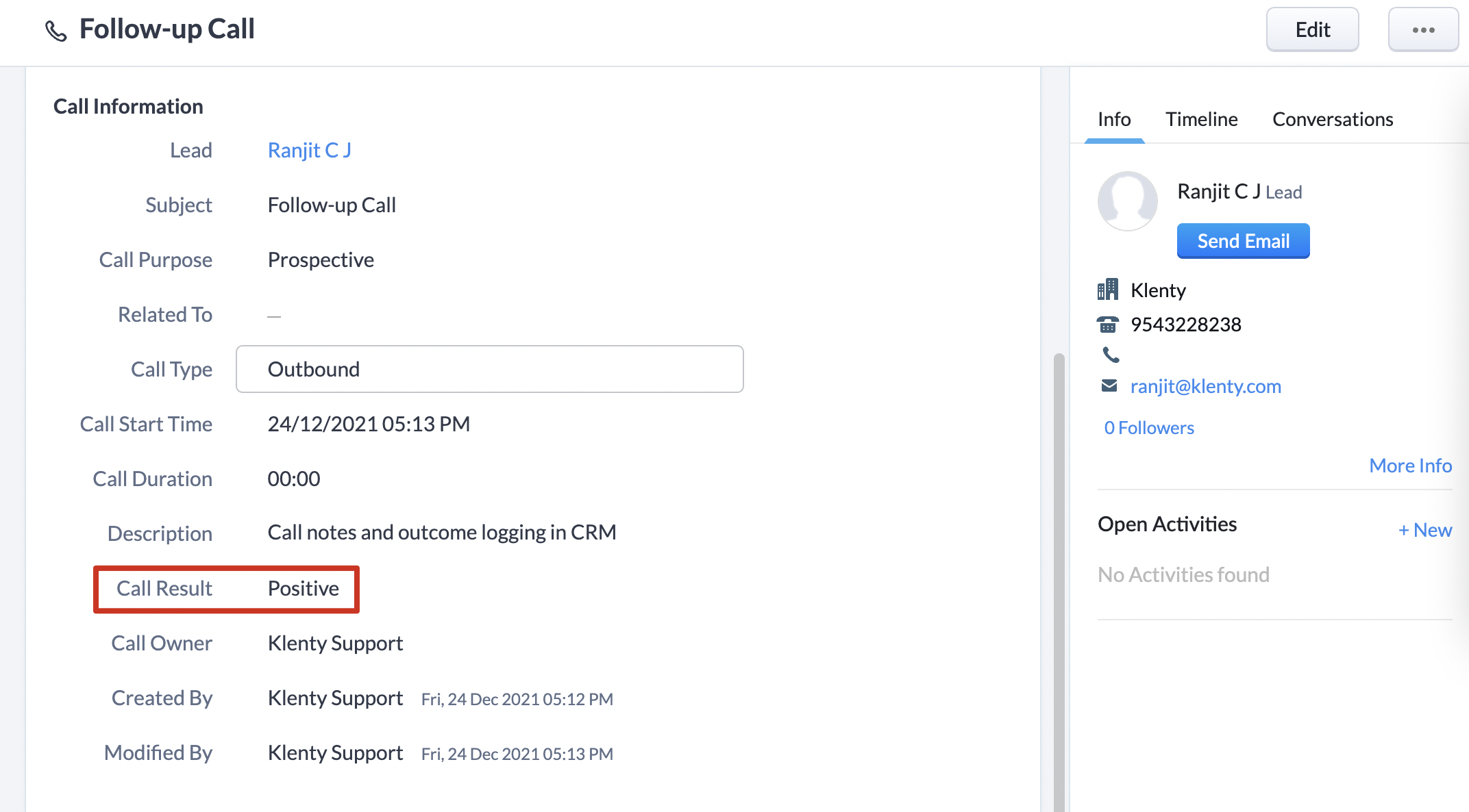 Now, let's see how the logged outcome looks like in various CRMs: