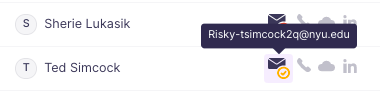 The yellow tick indicates that the email id is risky,