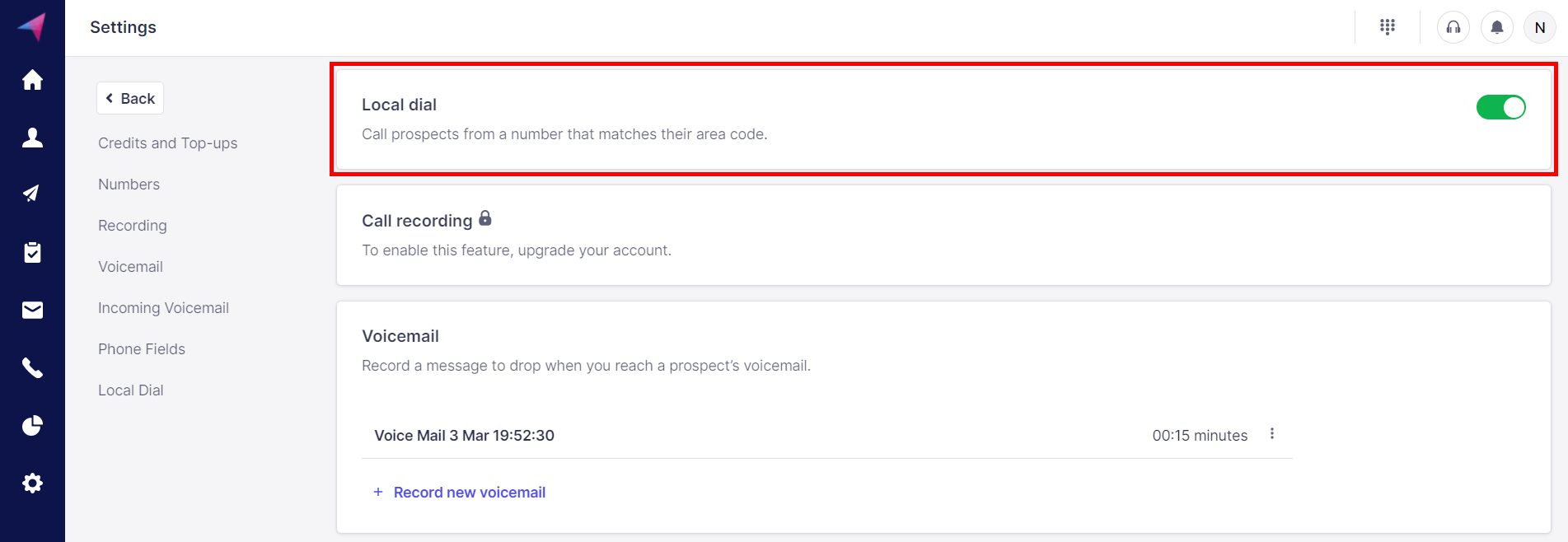 Further on, you can turn ON and OFF the Local Dial feature on your Dialer before making calls, as and when required, giving you the ease of accessibility.