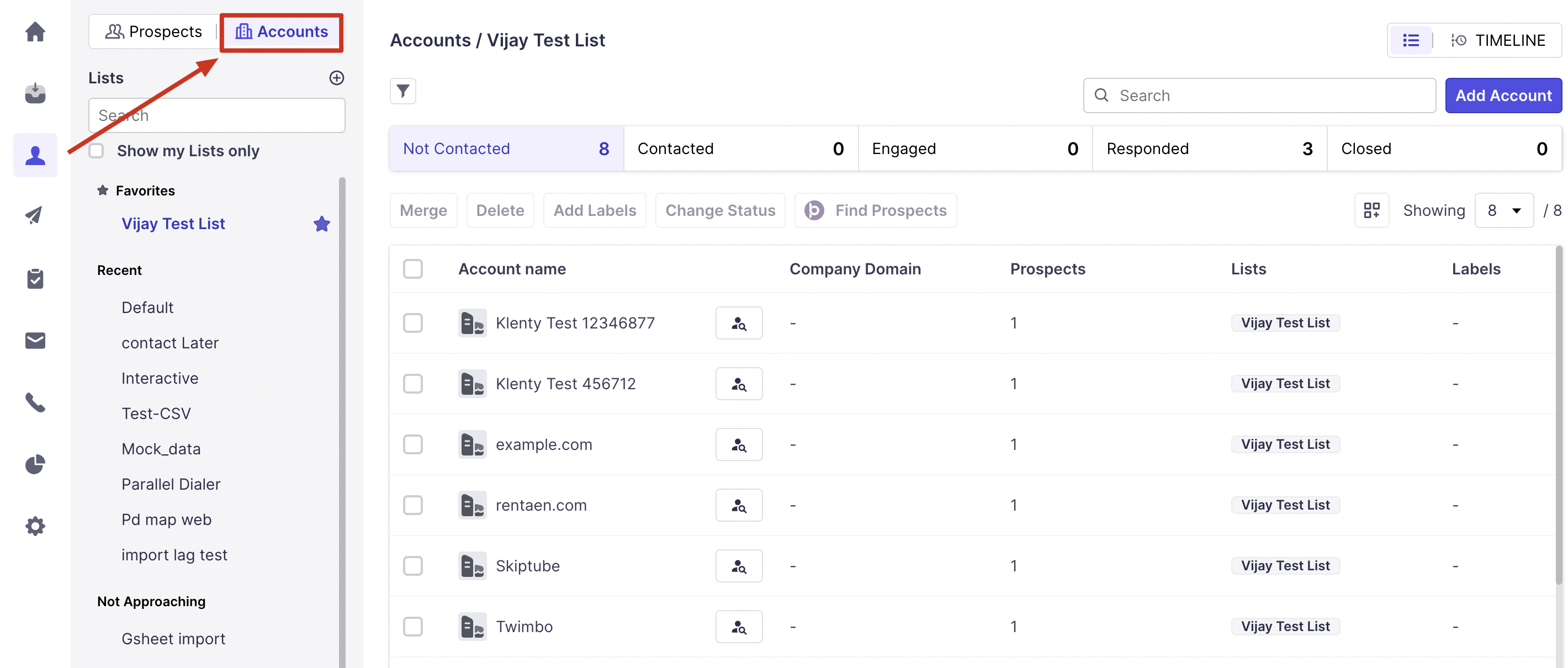 A dedicated section called "Accounts" has been introduced where you get to visualize your prospects grouped in terms of their domain.