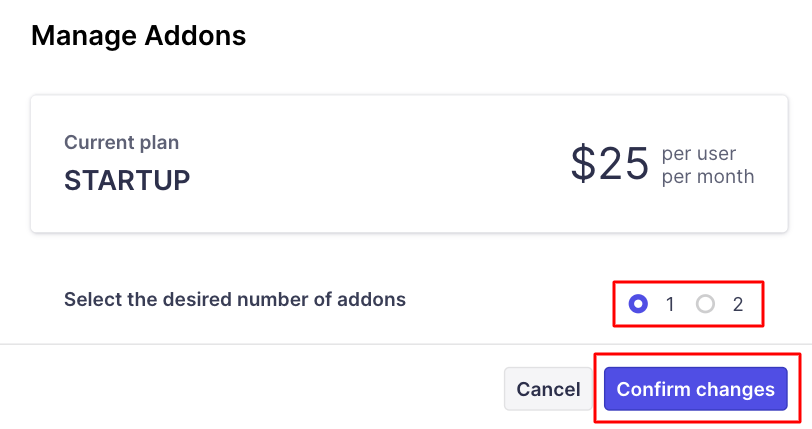 And then select the Buy button, choose the desired number of add-ons, and hit on the confirm changes option.