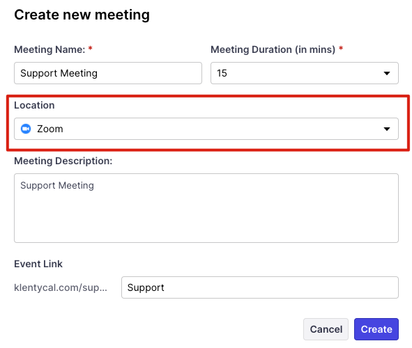 Note: When Zoom is disconnected, you won’t be able to set the meeting location as Zoom.