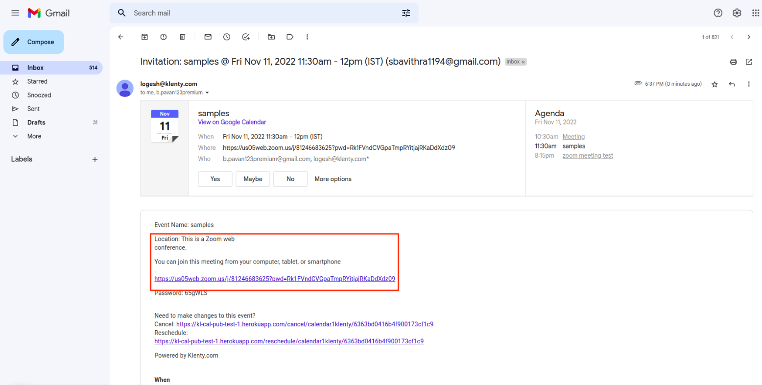 When a Prospect books a meeting, the meeting confirmation email will have “Zoom” as the meeting location with a Zoom meeting link.
