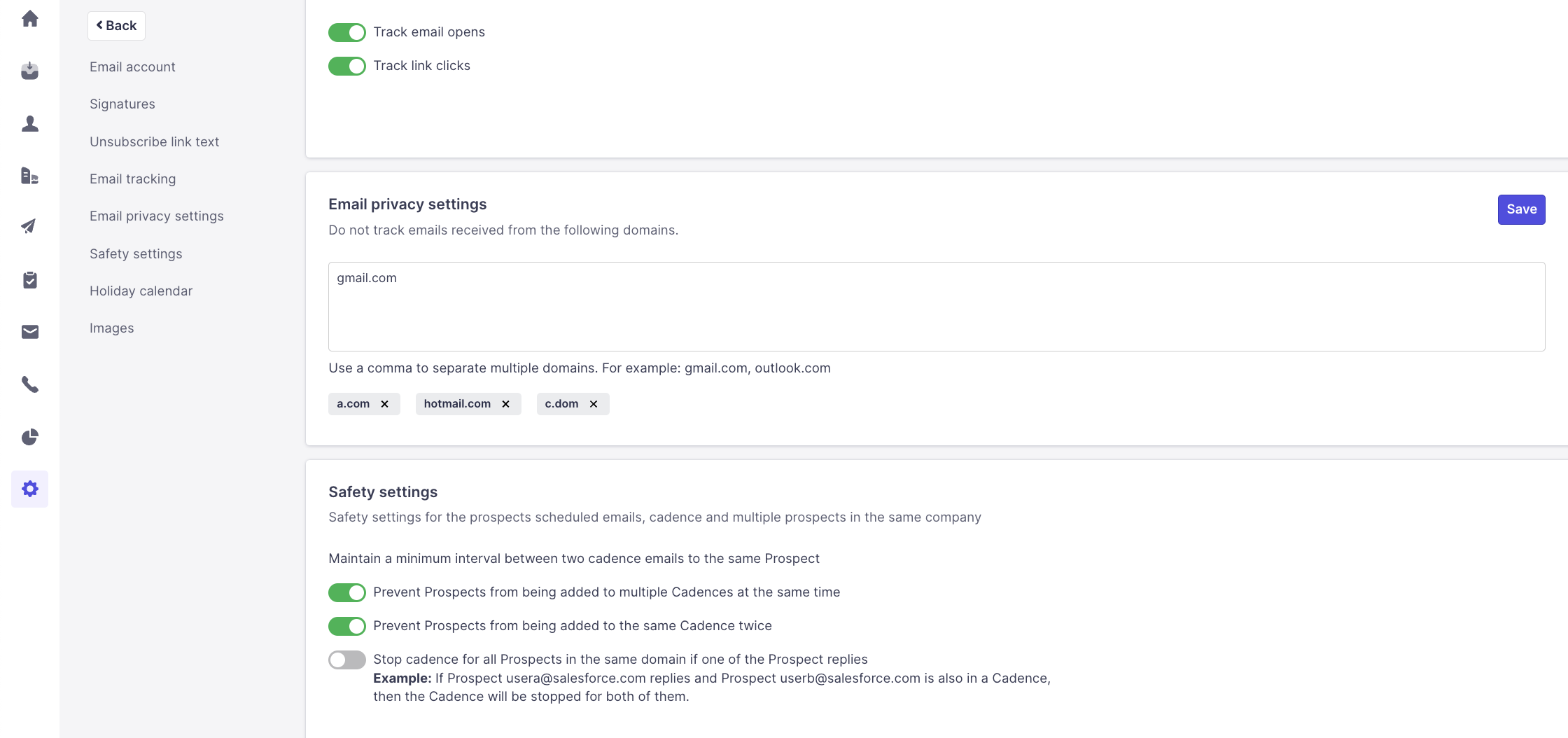 Internal emails can sometimes show up in your live feed and Inbox in Klenty. This happens when you add your colleagues, or even yourself, as prospects in Klenty. So when you have email conversations internally, they will appear in Klenty as well. The Email Privacy settings help to prevent these emails from being tracked.