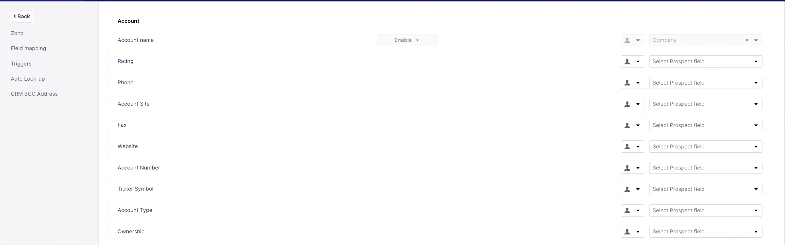Field Mappings for Accounts module: