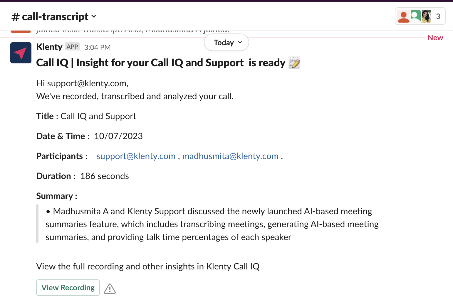 Connecting Call IQ to Slack helps you send the meeting notes to a specific Slack channel.