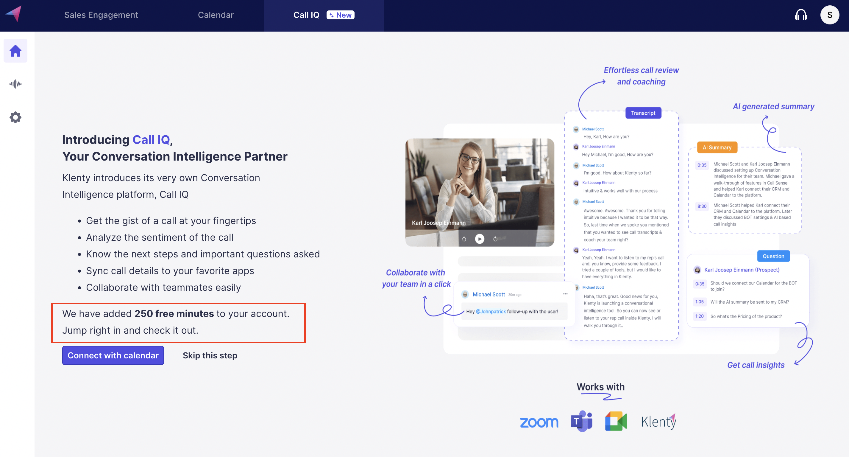 Connect your Calendar to Call IQ - this allows Call IQ to identify the calls to transcribe and analyze.