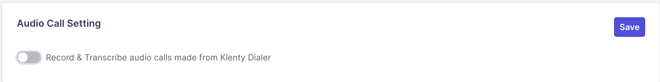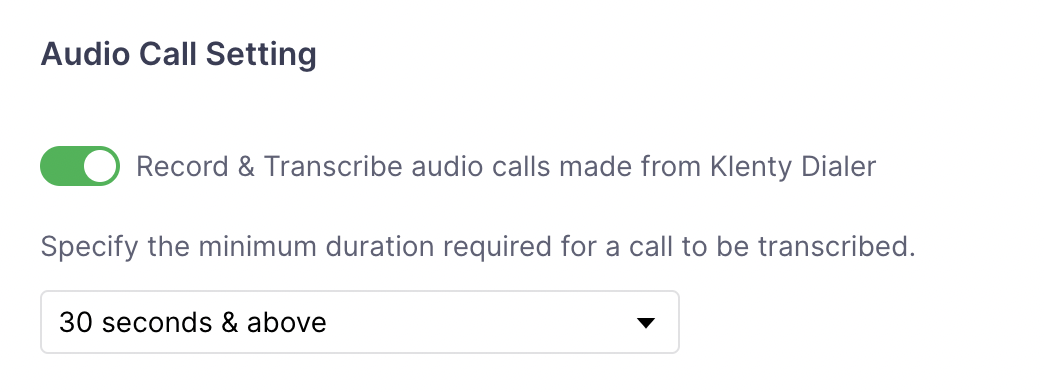 This setting can be used to transcribe Audio calls made through the Klenty dialer.