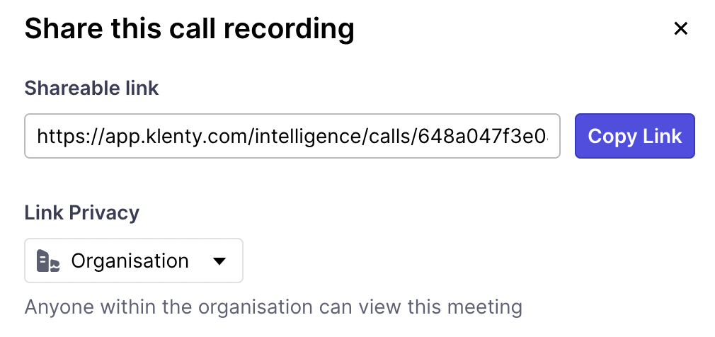 Organizers can share the meeting recording and transcript link with the participants, internal team members, outside the organization, etc.