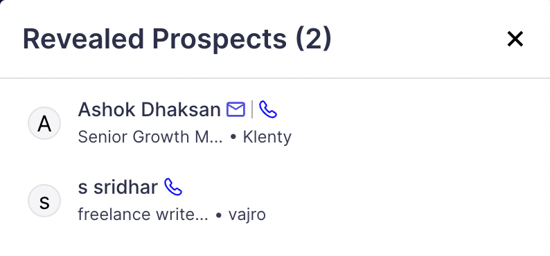 When contact information is revealed, the information is automatically added to your Klenty account as a prospect.