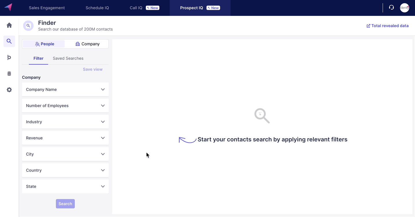 You can search your leads based on different Filters available in Prospect IQ. You can start with a broader search for individual People or Companies and use filters to narrow down.