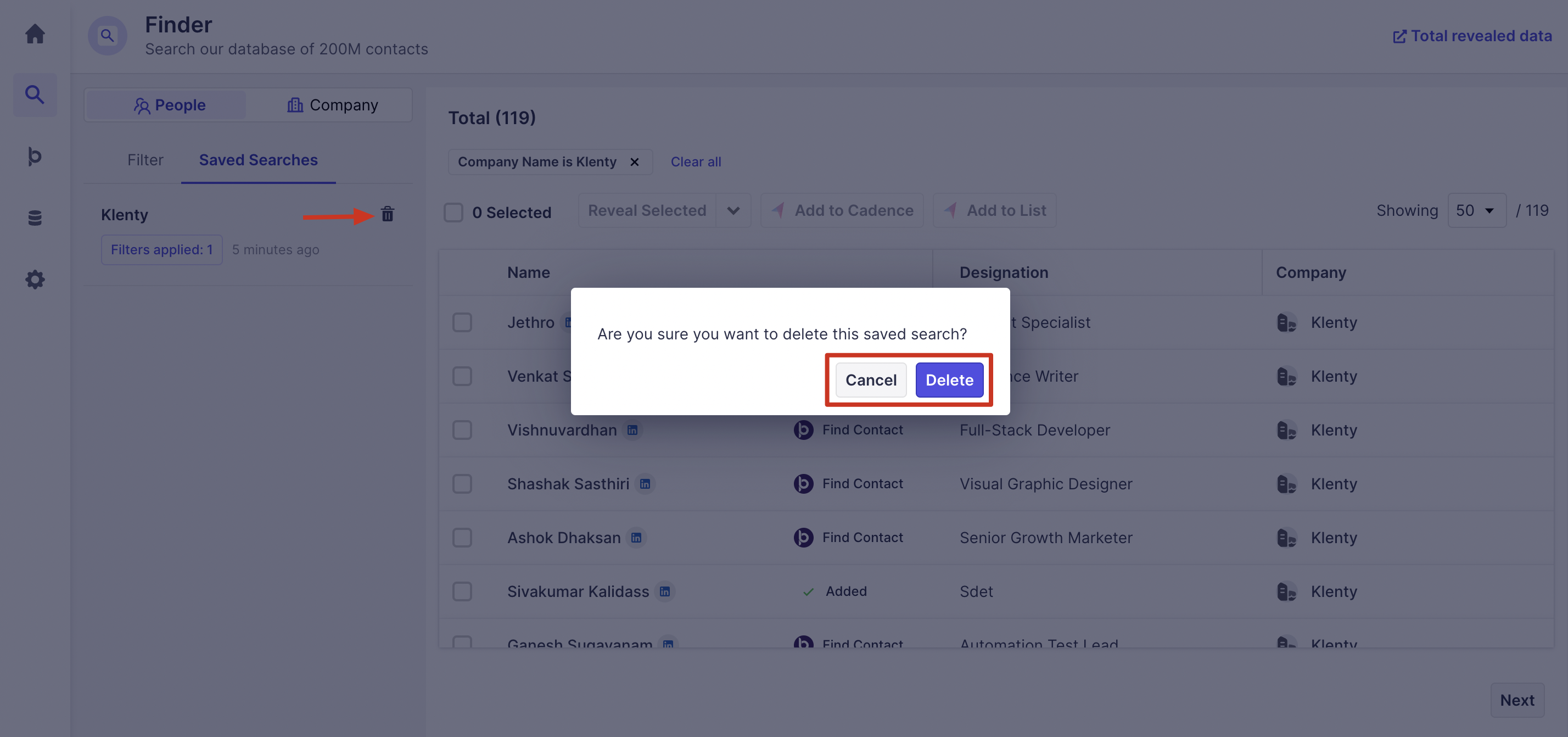 For example, if you use the Domain filter, search with the complete domain like klenty.com, chargebee.com.