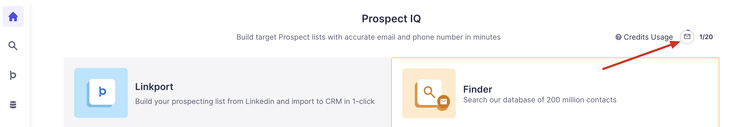 You can find leads via Prospect IQ based on the available credits on your account.